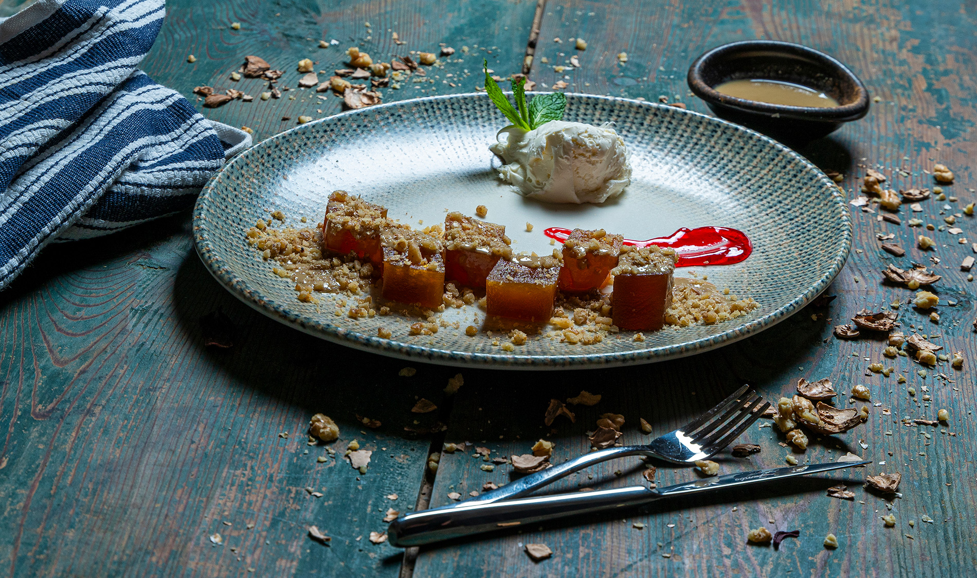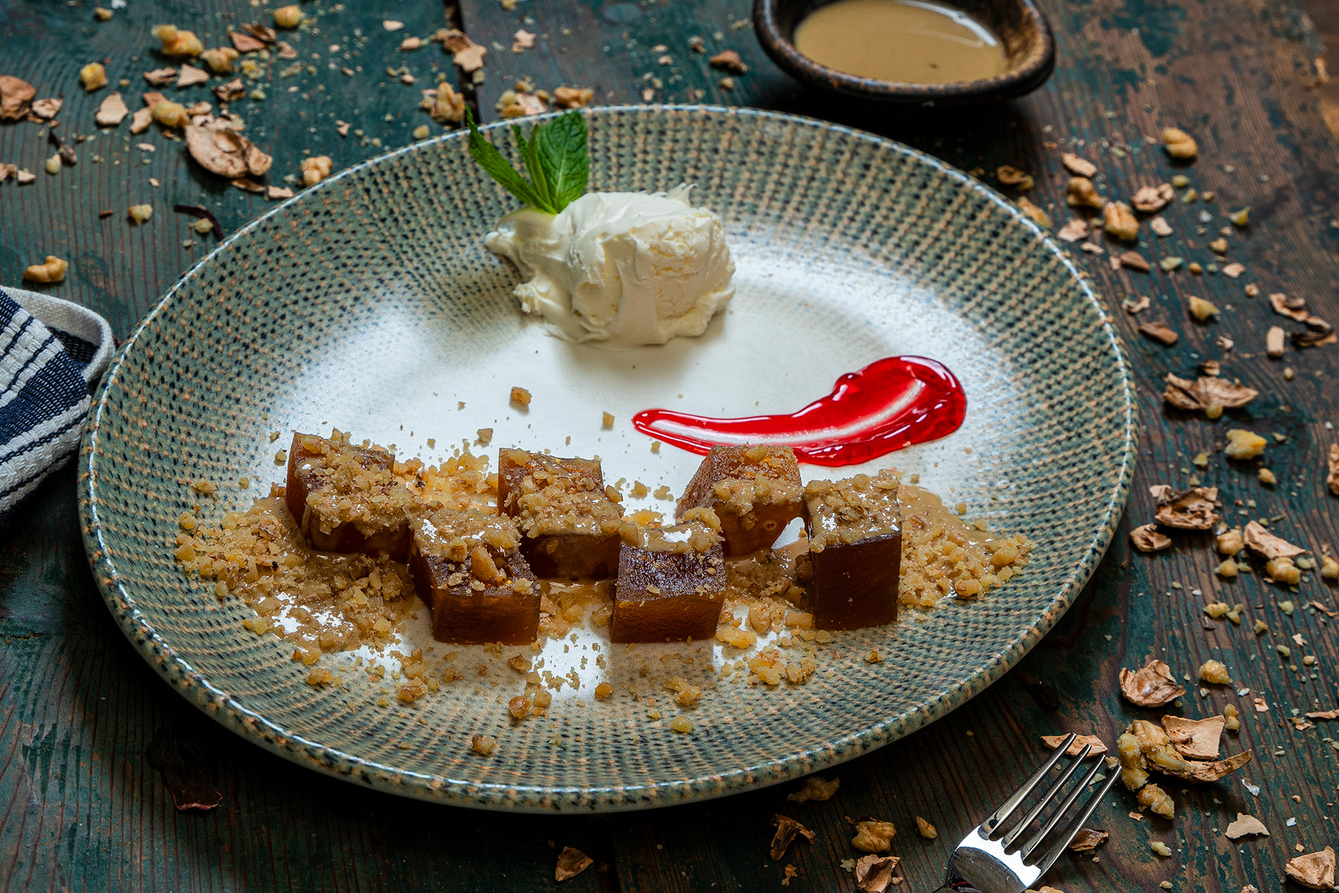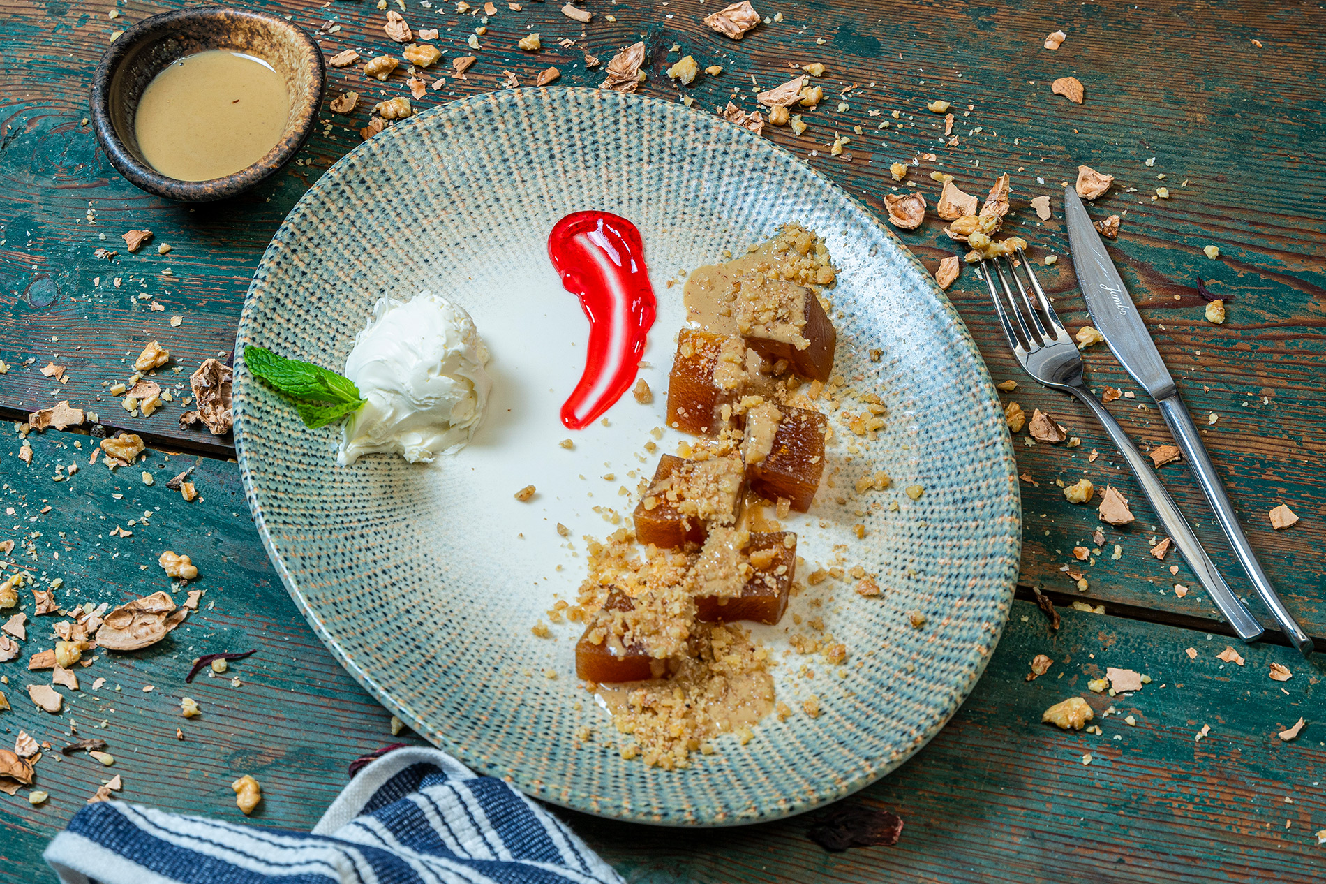 Çıtır Kabak Tatlısı, şeker şurubunda pişirilmiş ve özel bir tatlı krema ile buluşturulmuş doğranmış kabaklarla hazırlanır. Yöresel tariflerin izinden giderek yapılan bu tatlı, kabakların hafif tatlılığını ve şurubunun karamelize dokusunu bir araya getirir. Sunum anında, geleneksel desenli porselen tabaklarda veya renkli seramik kaselerde servis edilen Çıtır Kabak Tatlısı, üzerine serpilmiş çıtır ceviz parçacıklarıyla tamamlanır. Her ısırık, Anadolu'nun doğallığını ve lezzet çeşitliliğini yansıtan bir hikayeyi anlatır. Çıtır Kabak Tatlısı, hafifliği ve çıtır çıtır dokusuyla Anadolu mutfağının eşsiz bir tatlı deneyimini sofralara taşır.