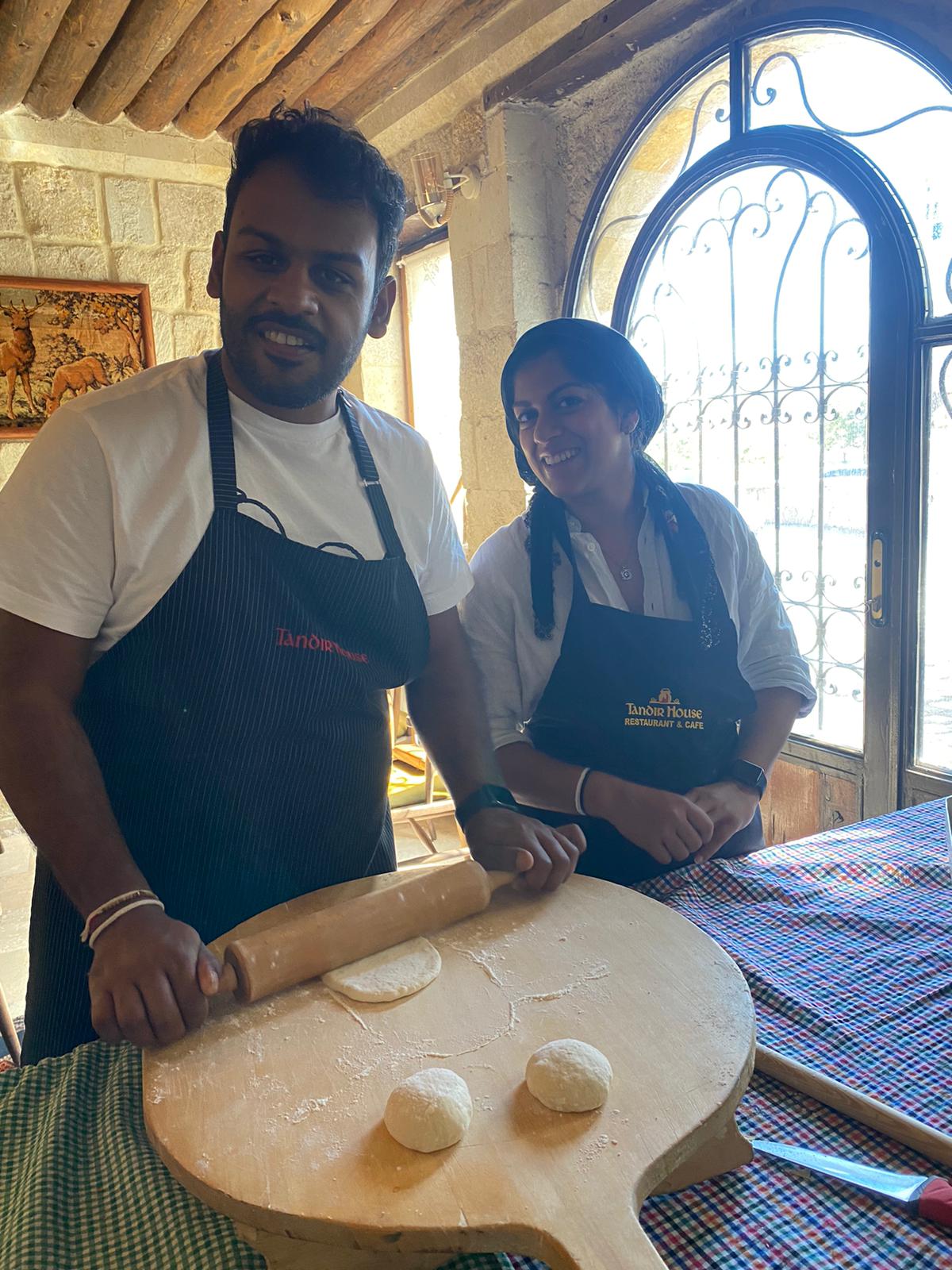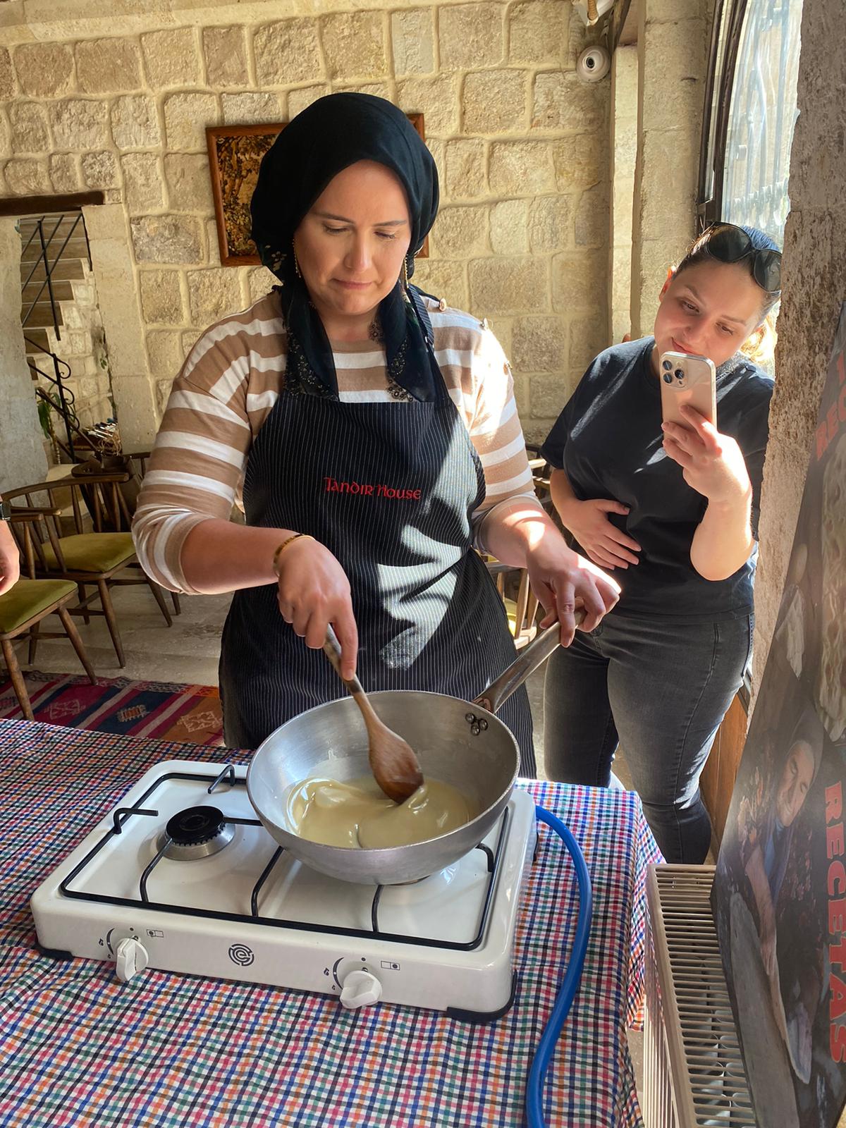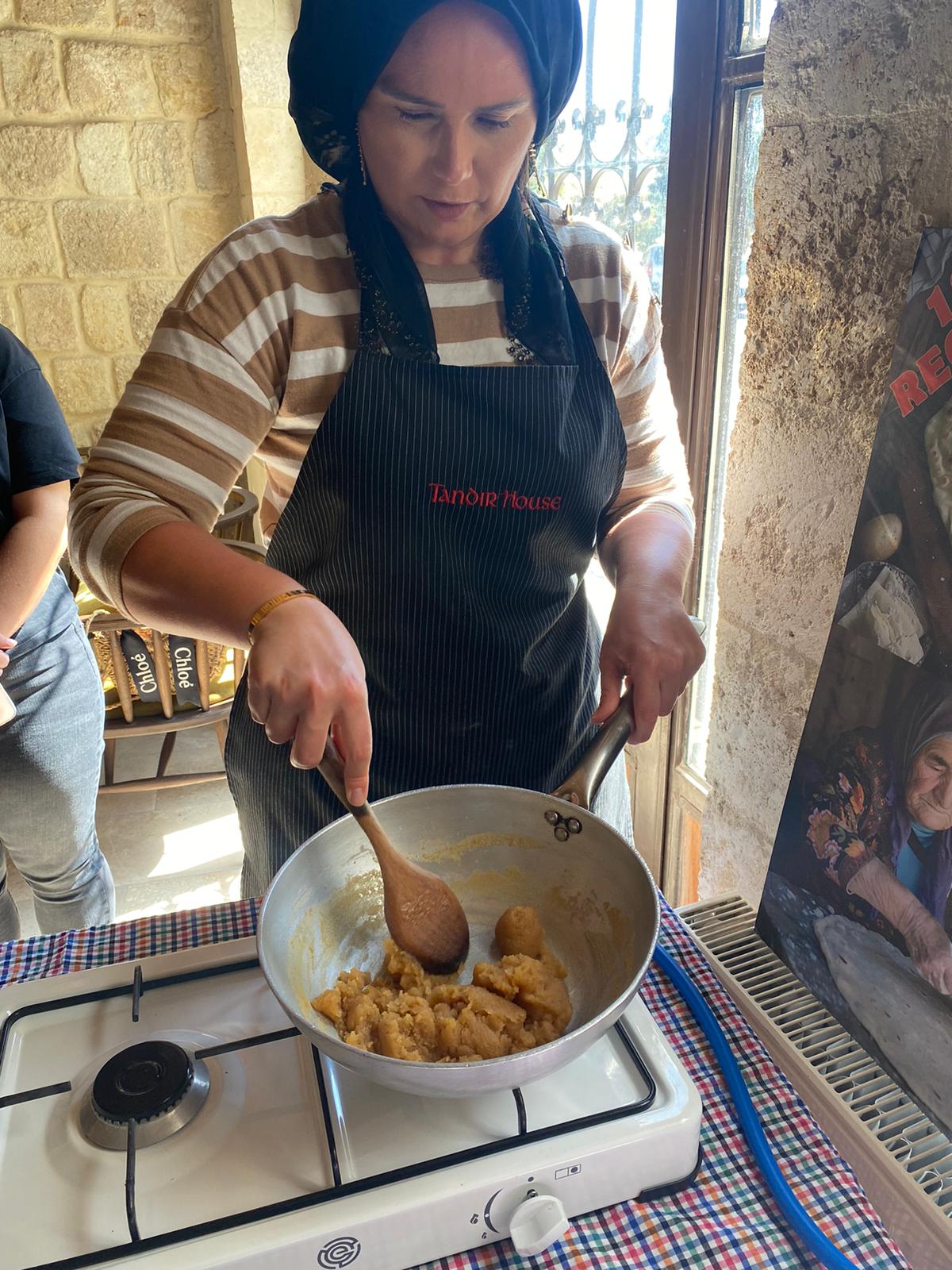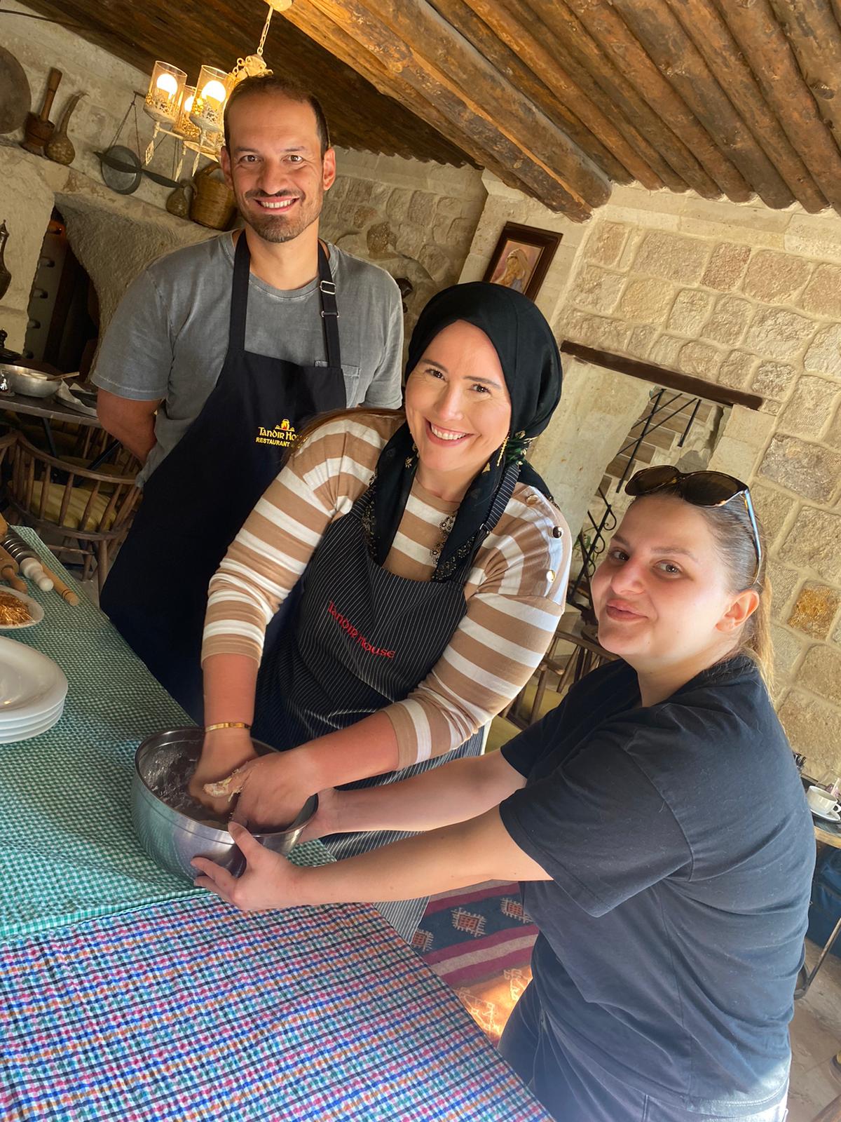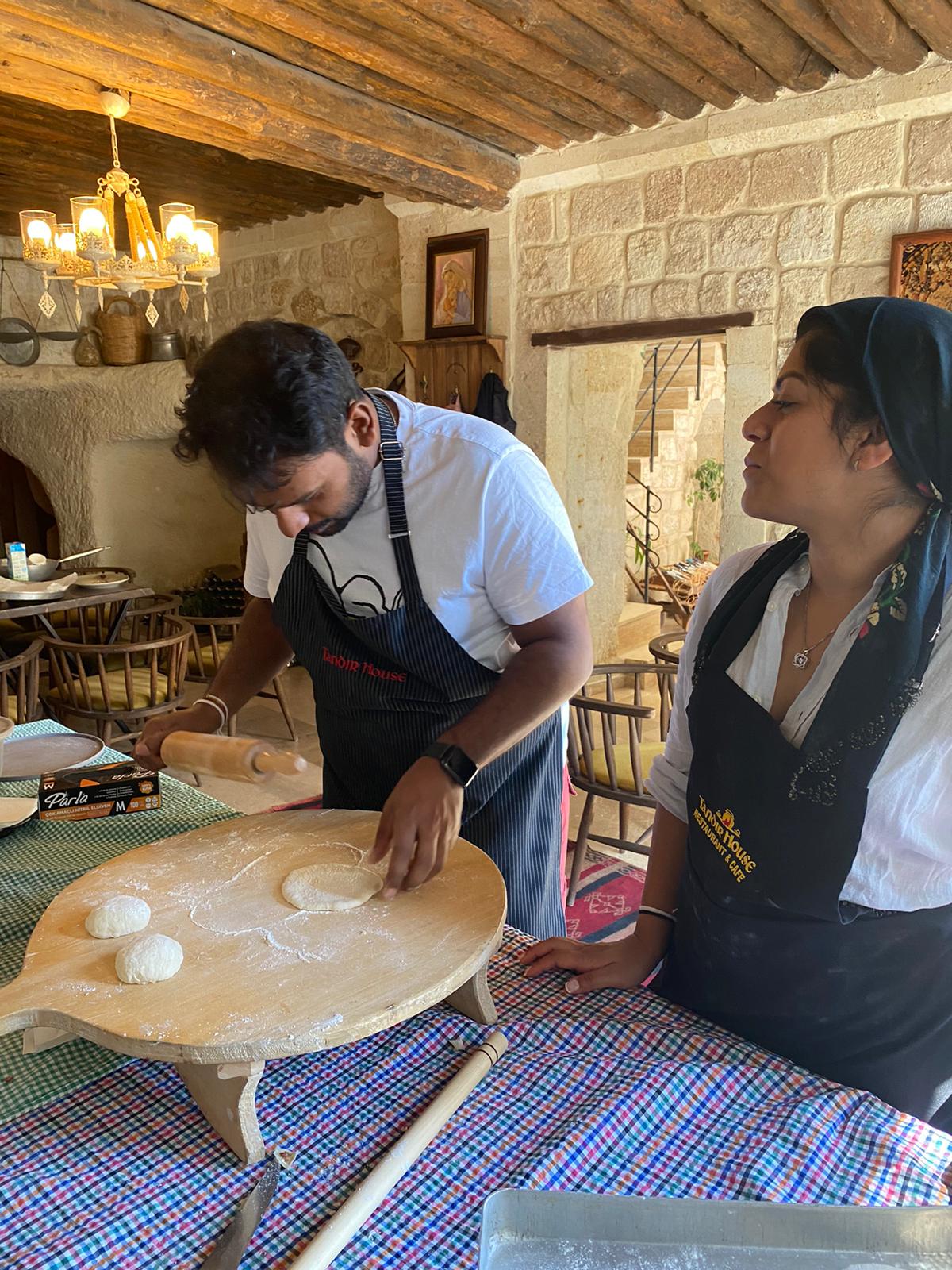 Sabah saat 10 civarında restoranımıza gelmiş oluyorlar; genellikle iş başlangıç saatimiz 10. İlk olarak, bazlama ekmeği ve mantı için hamur yoğruluyor. Ardından yaprak sarması hazırlanmaya başlanıyor. Hamur dinlendikten sonra bazlama ekmeği yapılıyor ve ardından mantı sıkma işlemi gerçekleştiriliyor. İçli köfte için harç hazırlanıyor ve içli köfte yapımına geçiliyor. Eğer testi kebabı istenirse, testi hazırlığı yapılıp pişiriliyor. Bu işlem isteğe bağlı olarak yapılır ve ek ücretlendirme uygulanır. Ayrıca, hazırlık süresi yaklaşık 1 saat daha uzar. Son olarak, tatlı olarak Aside hazırlanıyor.
