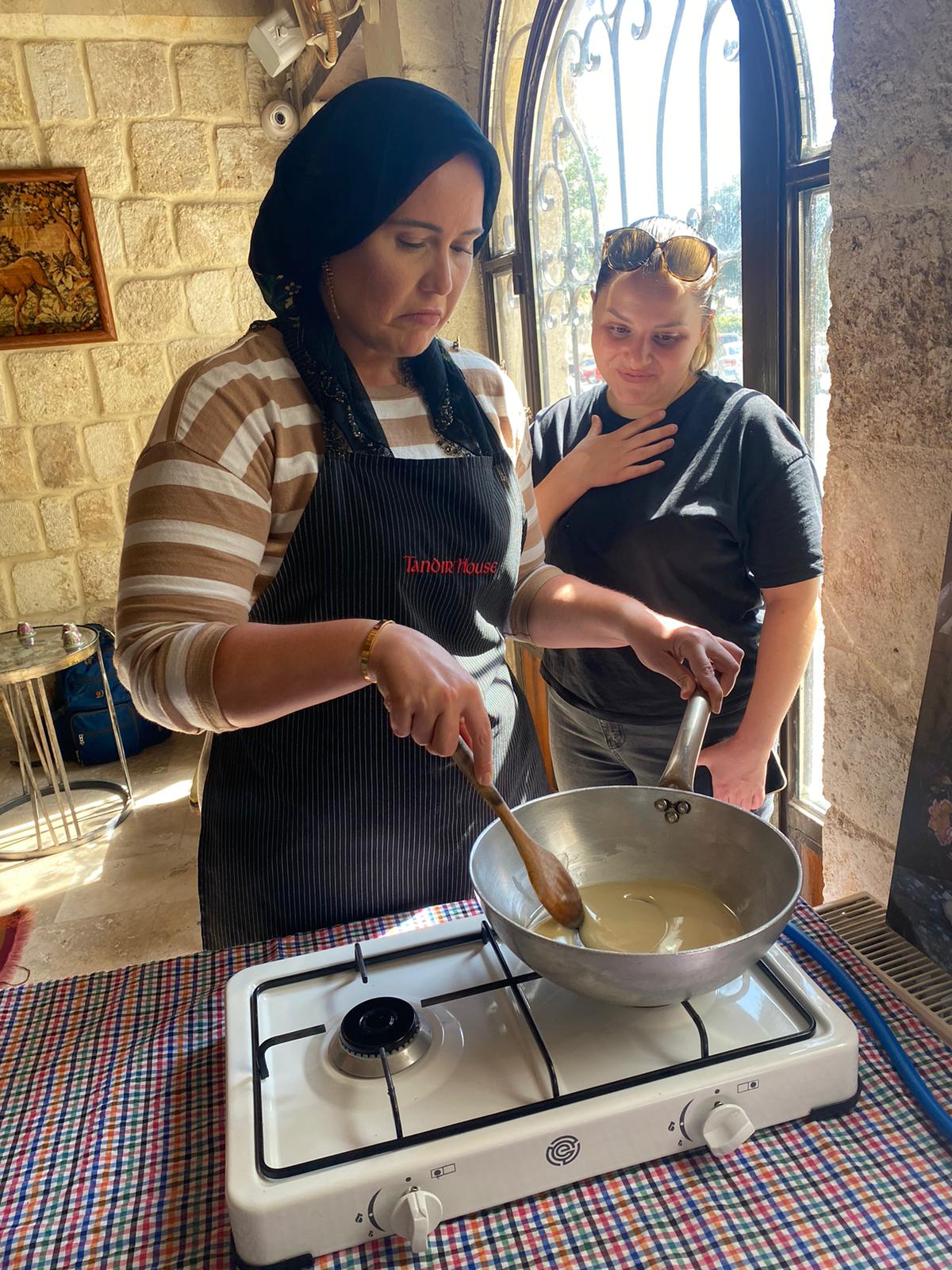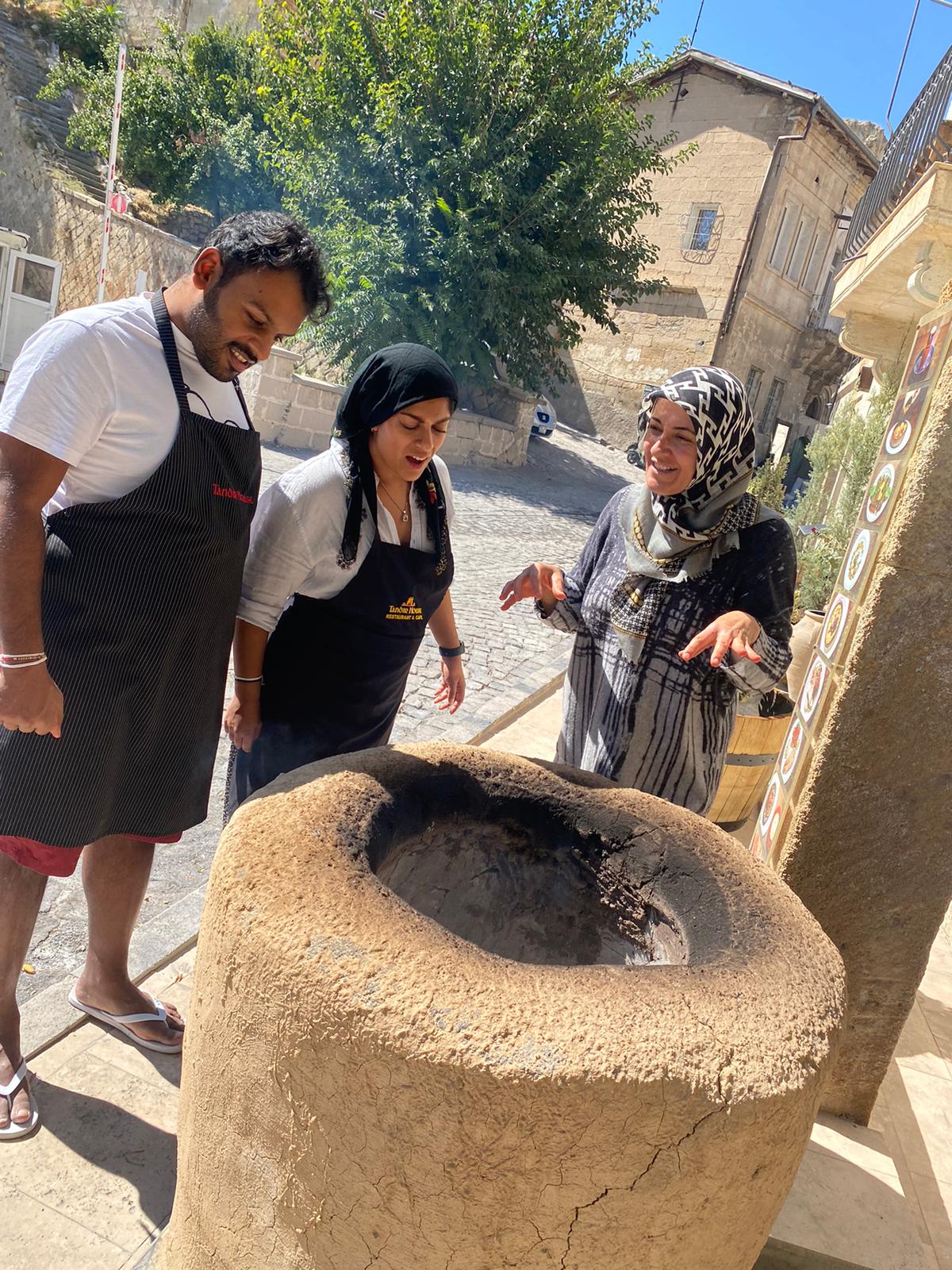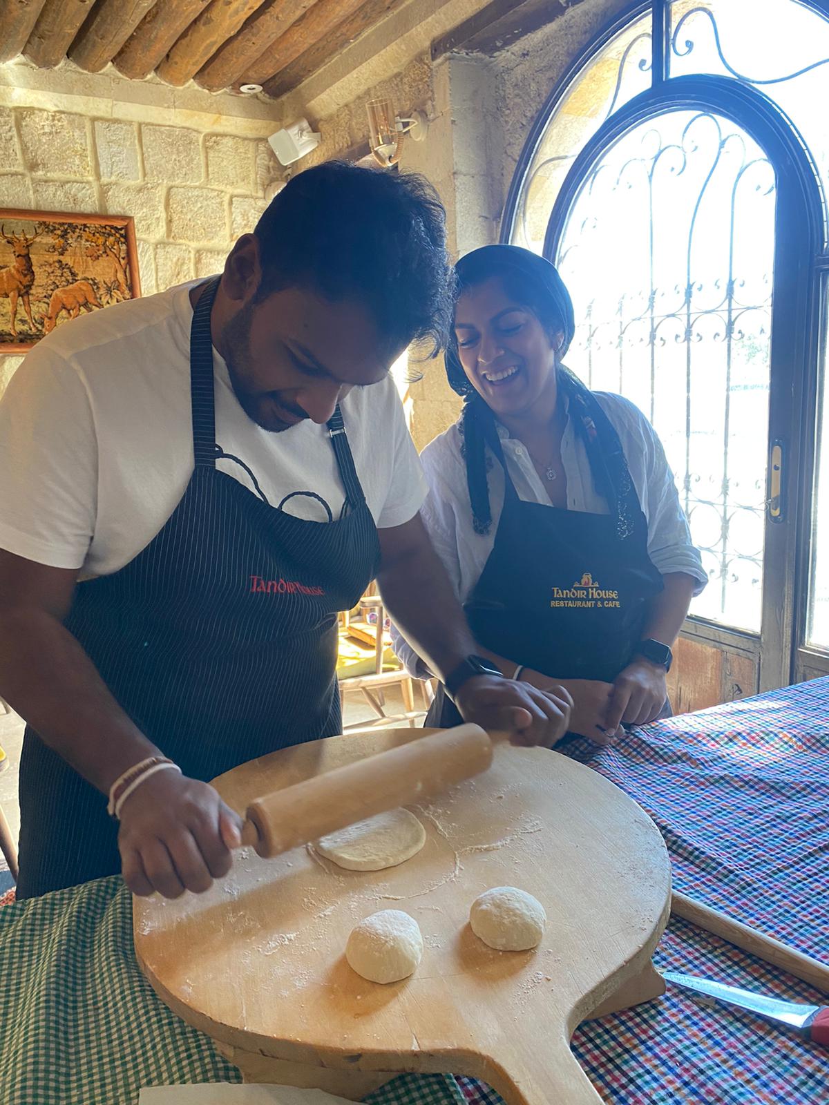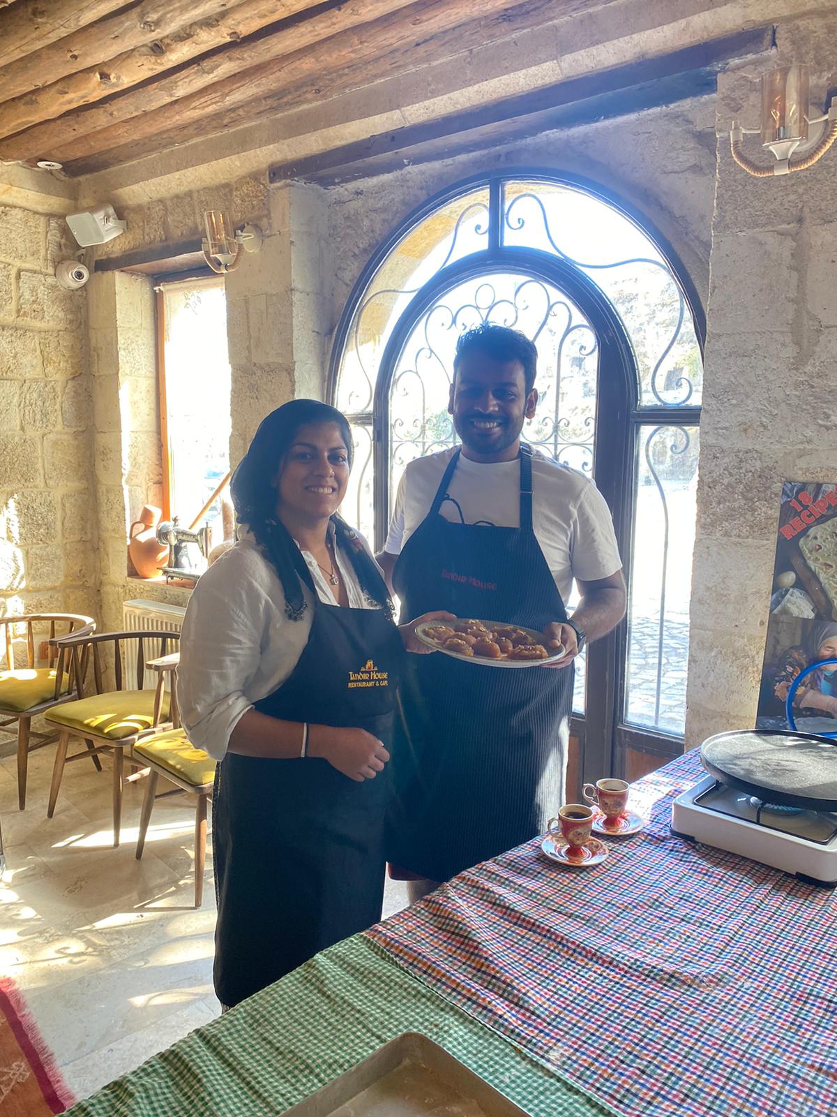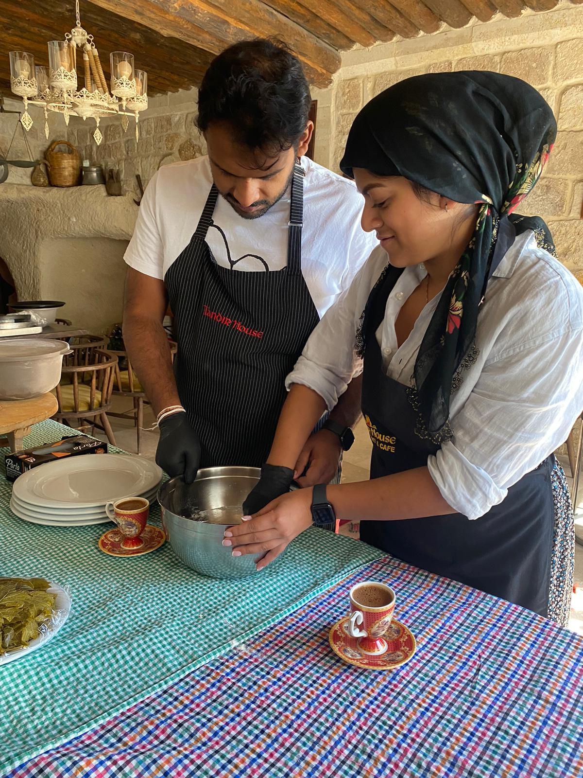 Sabah saat 10 civarında restoranımıza gelmiş oluyorlar; genellikle iş başlangıç saatimiz 10. İlk olarak, bazlama ekmeği ve mantı için hamur yoğruluyor. Ardından yaprak sarması hazırlanmaya başlanıyor. Hamur dinlendikten sonra bazlama ekmeği yapılıyor ve ardından mantı sıkma işlemi gerçekleştiriliyor. İçli köfte için harç hazırlanıyor ve içli köfte yapımına geçiliyor. Eğer testi kebabı istenirse, testi hazırlığı yapılıp pişiriliyor. Bu işlem isteğe bağlı olarak yapılır ve ek ücretlendirme uygulanır. Ayrıca, hazırlık süresi yaklaşık 1 saat daha uzar. Son olarak, tatlı olarak Aside hazırlanıyor.