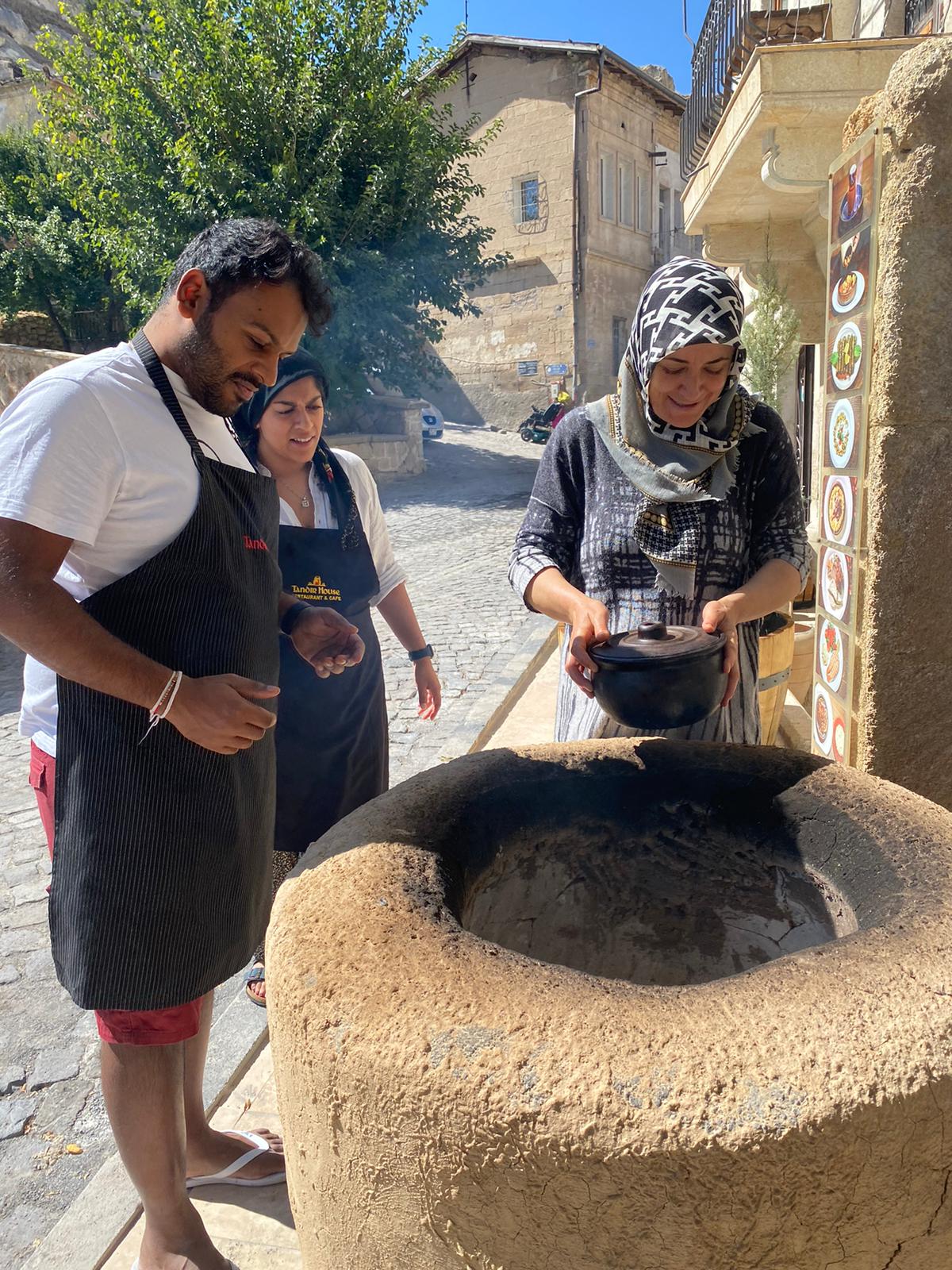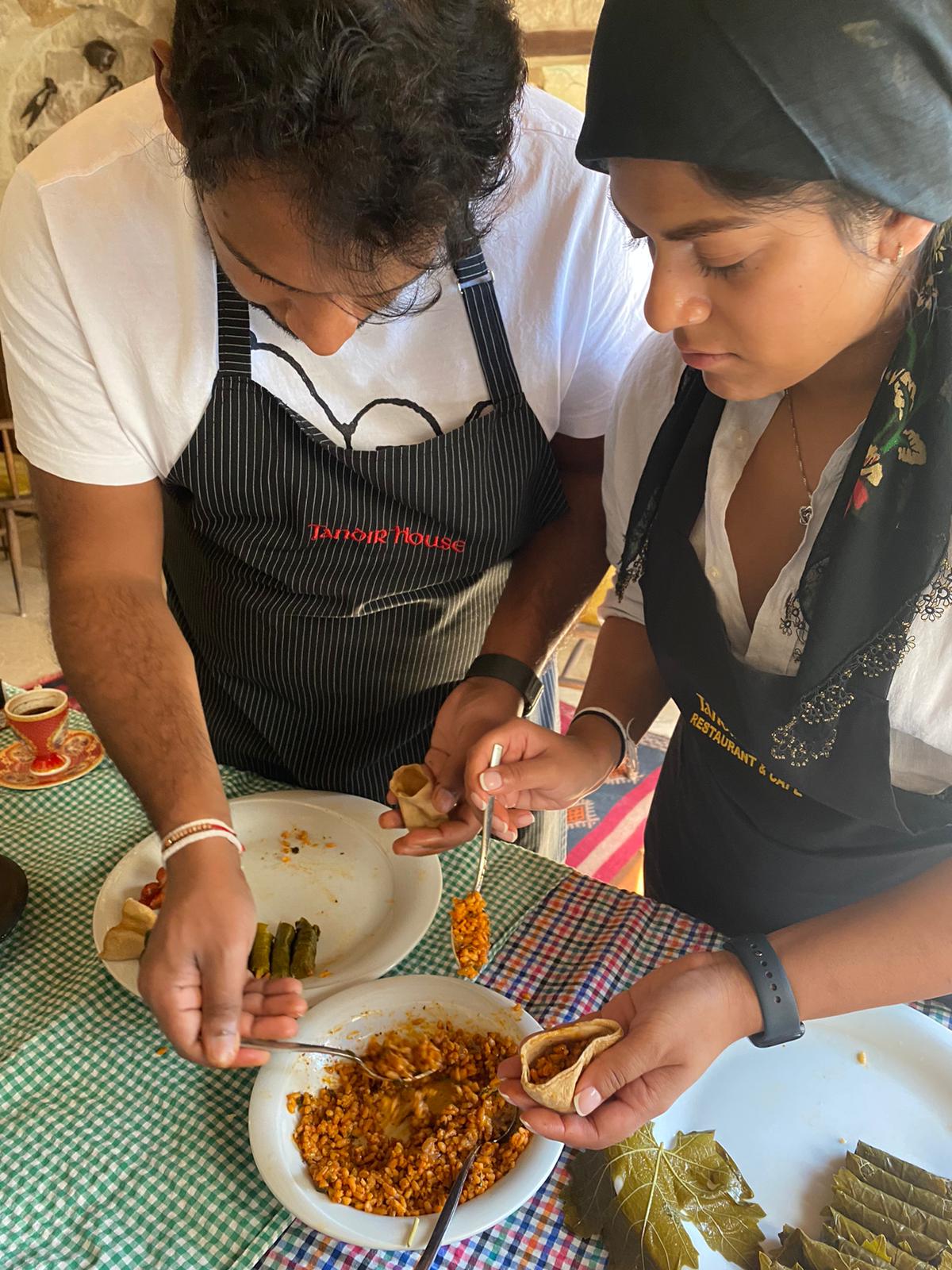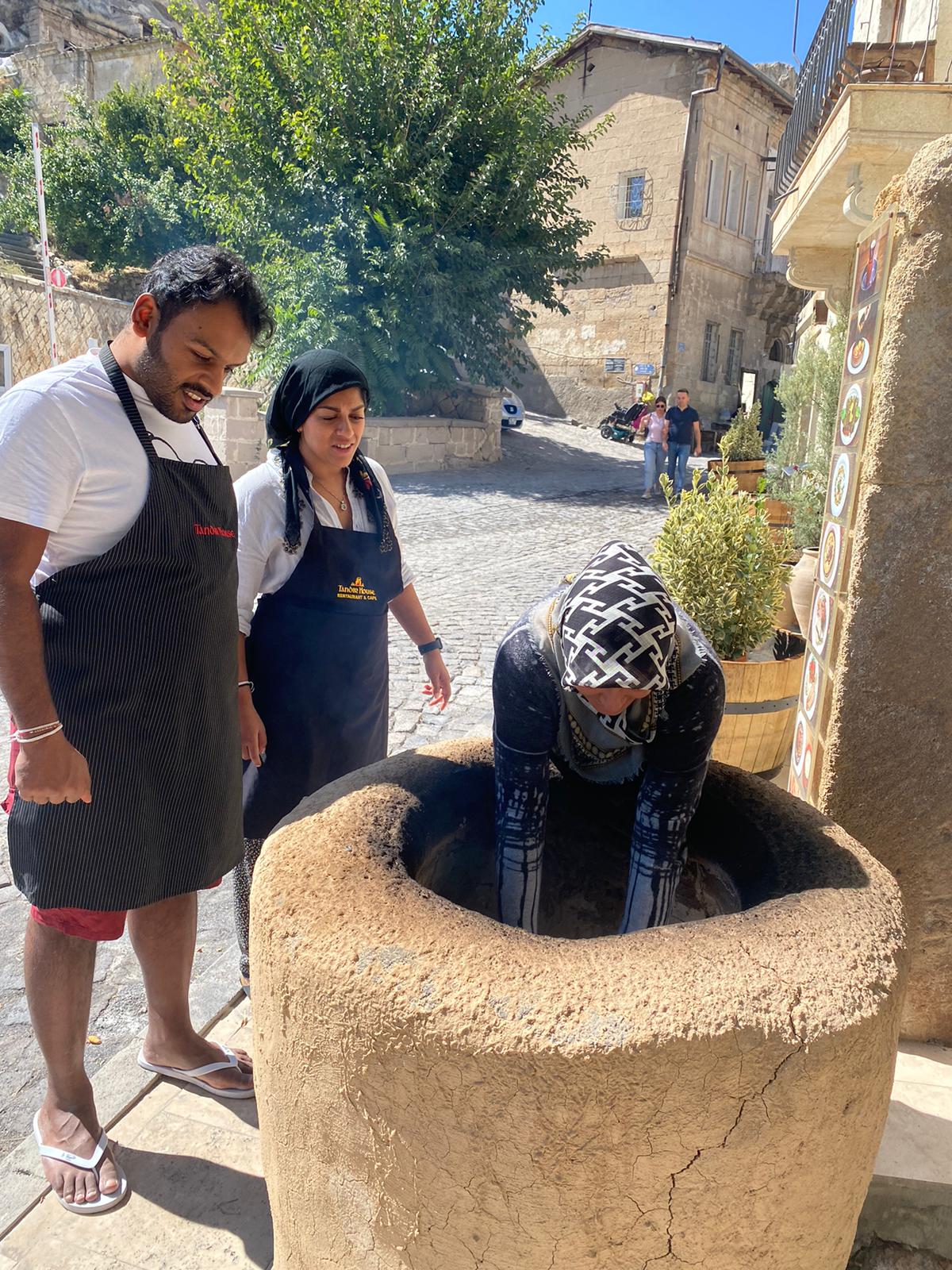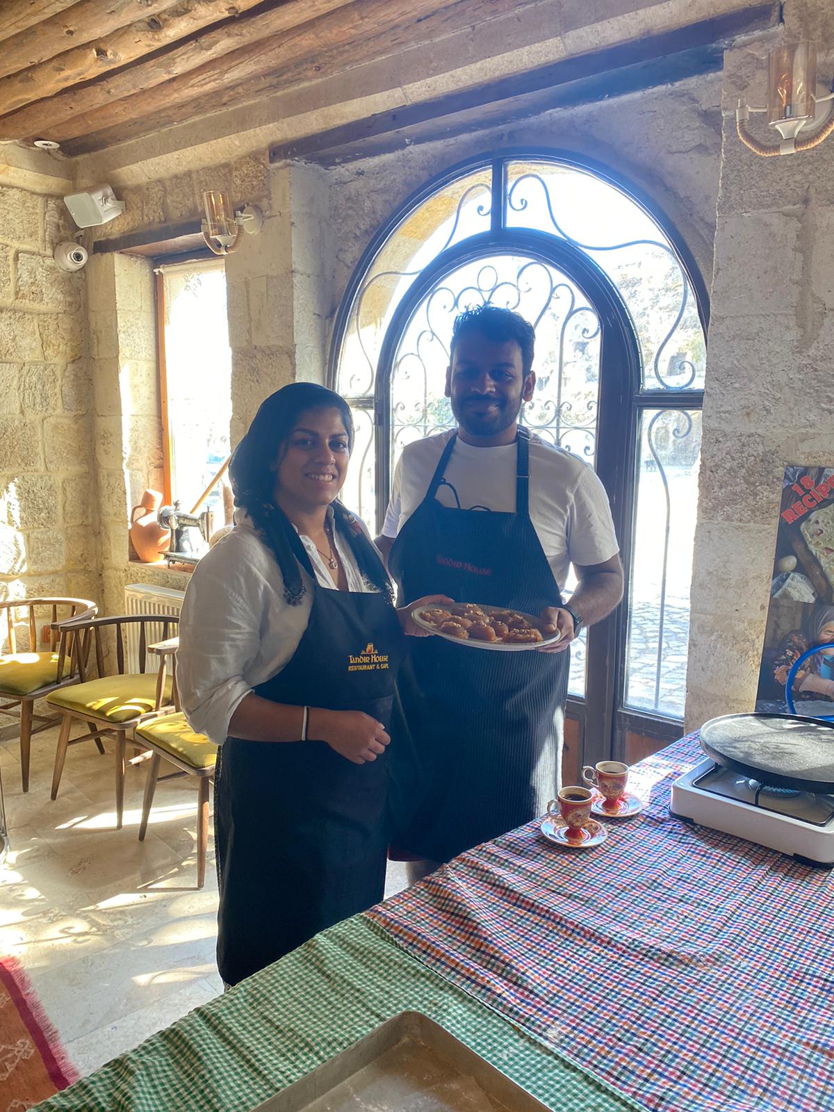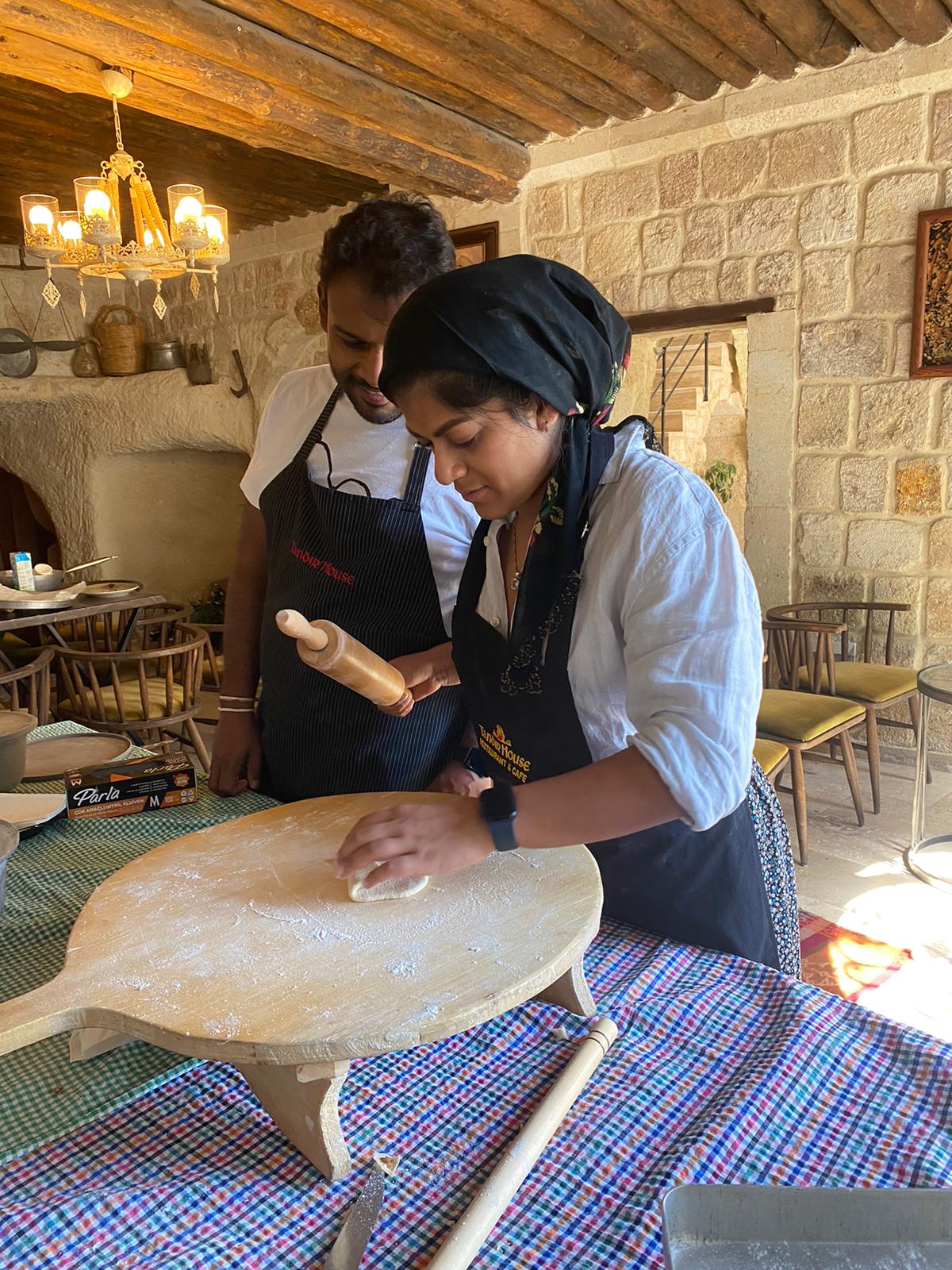 Sabah saat 10 civarında restoranımıza gelmiş oluyorlar; genellikle iş başlangıç saatimiz 10. İlk olarak, bazlama ekmeği ve mantı için hamur yoğruluyor. Ardından yaprak sarması hazırlanmaya başlanıyor. Hamur dinlendikten sonra bazlama ekmeği yapılıyor ve ardından mantı sıkma işlemi gerçekleştiriliyor. İçli köfte için harç hazırlanıyor ve içli köfte yapımına geçiliyor. Eğer testi kebabı istenirse, testi hazırlığı yapılıp pişiriliyor. Bu işlem isteğe bağlı olarak yapılır ve ek ücretlendirme uygulanır. Ayrıca, hazırlık süresi yaklaşık 1 saat daha uzar. Son olarak, tatlı olarak Aside hazırlanıyor.