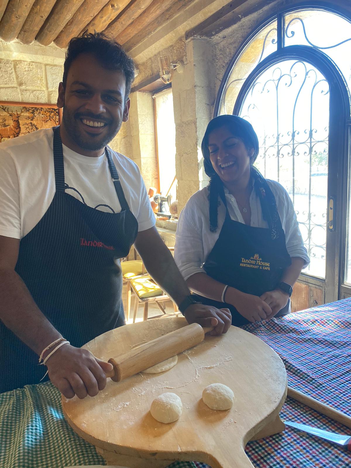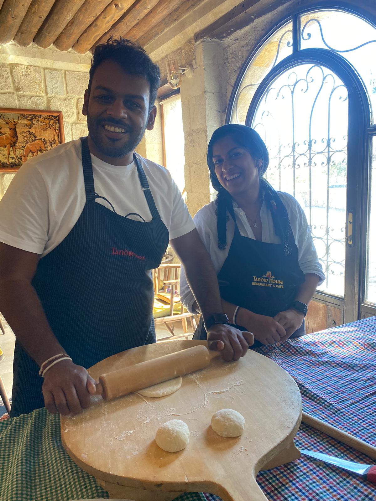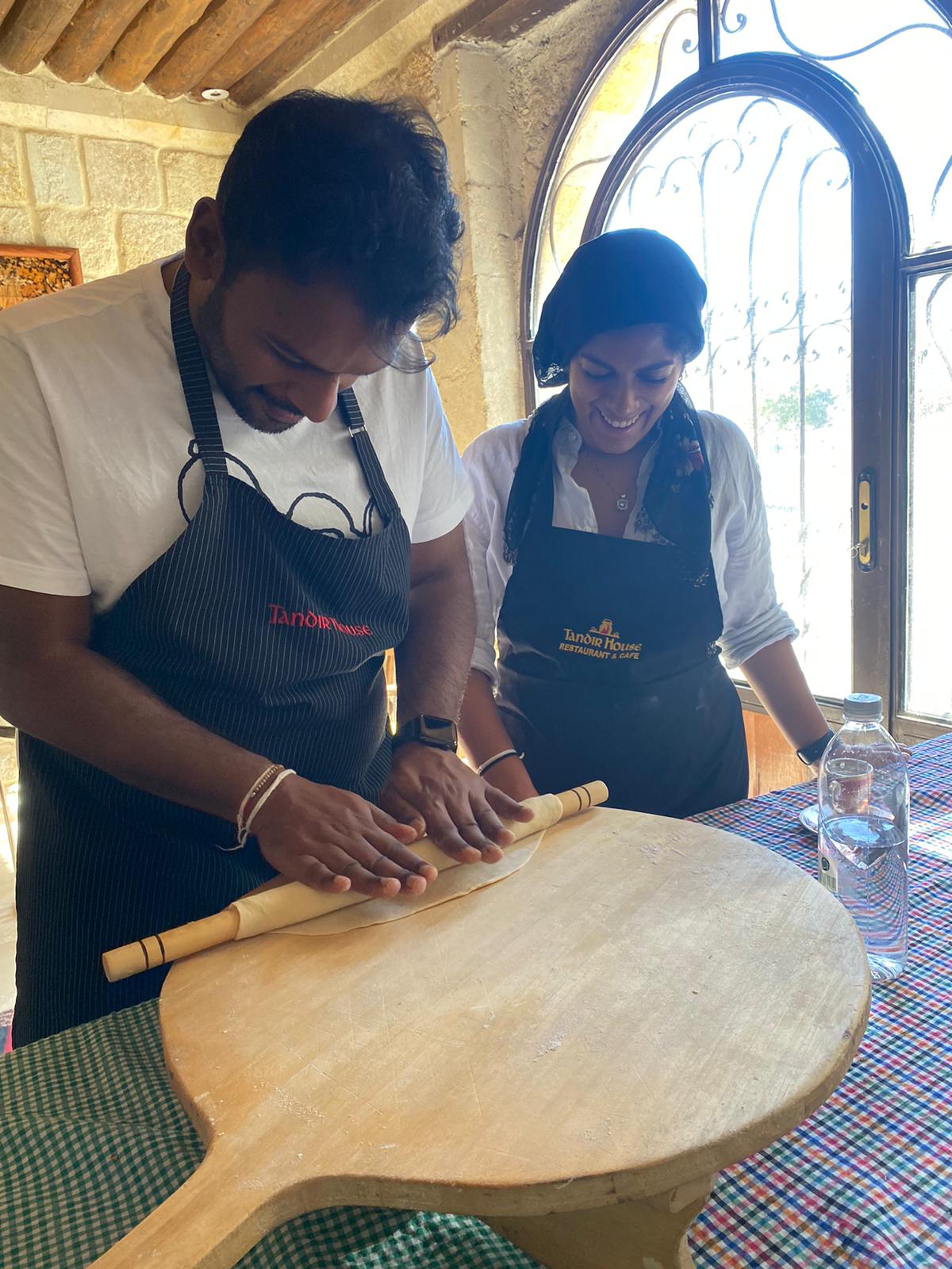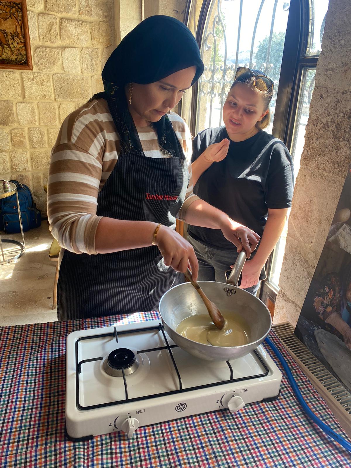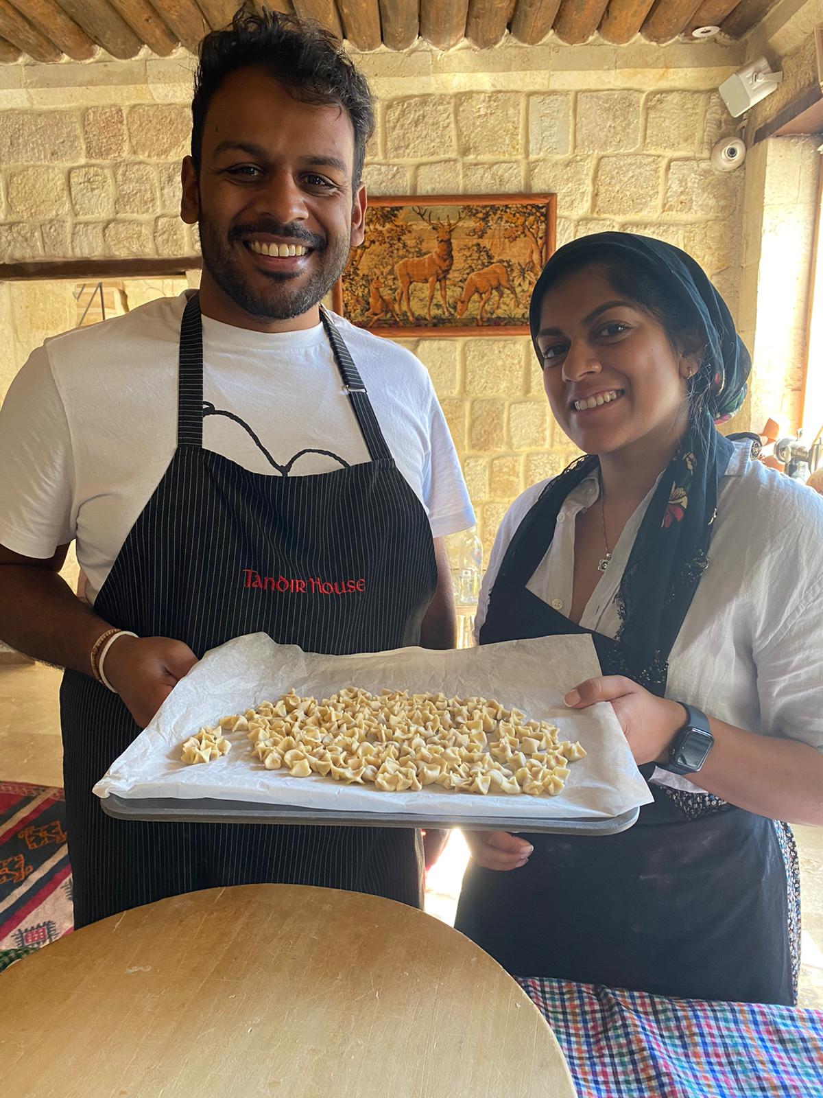 Sabah saat 10 civarında restoranımıza gelmiş oluyorlar; genellikle iş başlangıç saatimiz 10. İlk olarak, bazlama ekmeği ve mantı için hamur yoğruluyor. Ardından yaprak sarması hazırlanmaya başlanıyor. Hamur dinlendikten sonra bazlama ekmeği yapılıyor ve ardından mantı sıkma işlemi gerçekleştiriliyor. İçli köfte için harç hazırlanıyor ve içli köfte yapımına geçiliyor. Eğer testi kebabı istenirse, testi hazırlığı yapılıp pişiriliyor. Bu işlem isteğe bağlı olarak yapılır ve ek ücretlendirme uygulanır. Ayrıca, hazırlık süresi yaklaşık 1 saat daha uzar. Son olarak, tatlı olarak Aside hazırlanıyor.