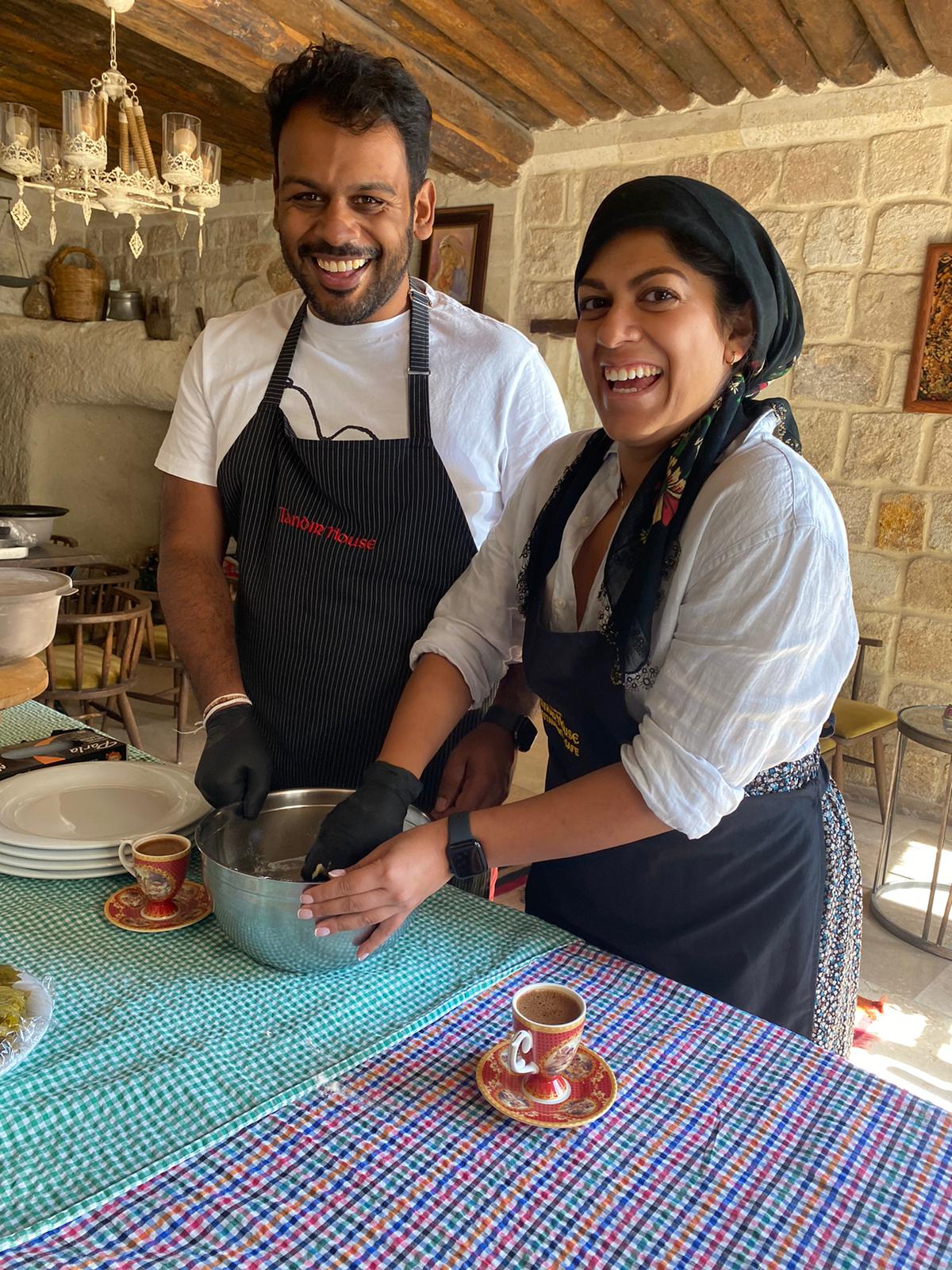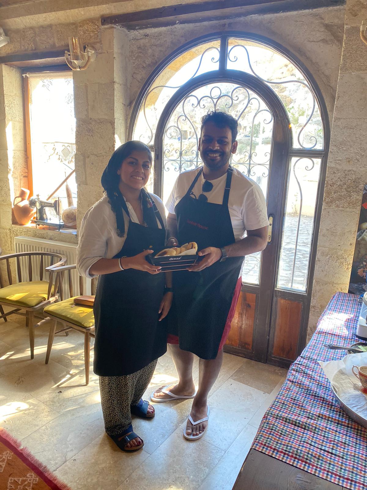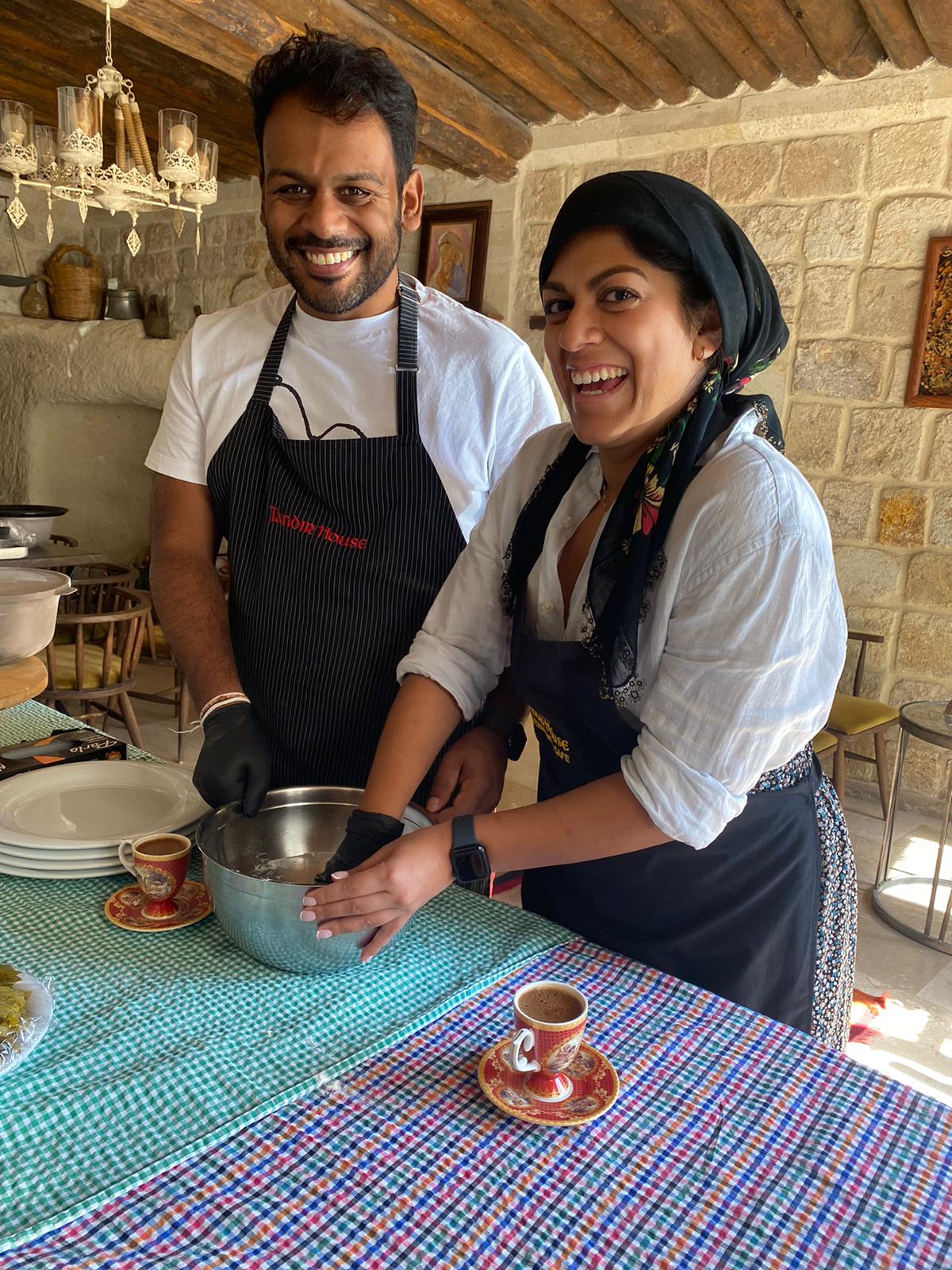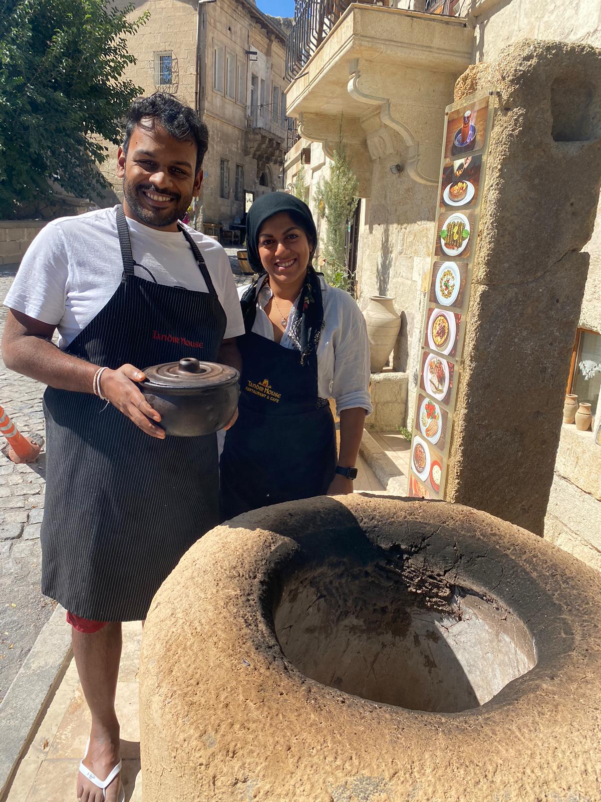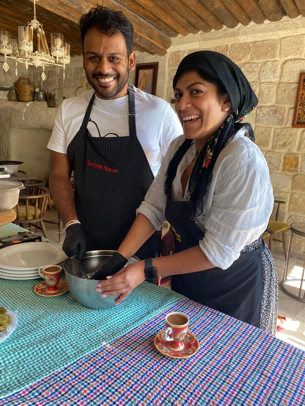 Sabah saat 10 civarında restoranımıza gelmiş oluyorlar; genellikle iş başlangıç saatimiz 10. İlk olarak, bazlama ekmeği ve mantı için hamur yoğruluyor. Ardından yaprak sarması hazırlanmaya başlanıyor. Hamur dinlendikten sonra bazlama ekmeği yapılıyor ve ardından mantı sıkma işlemi gerçekleştiriliyor. İçli köfte için harç hazırlanıyor ve içli köfte yapımına geçiliyor. Eğer testi kebabı istenirse, testi hazırlığı yapılıp pişiriliyor. Bu işlem isteğe bağlı olarak yapılır ve ek ücretlendirme uygulanır. Ayrıca, hazırlık süresi yaklaşık 1 saat daha uzar. Son olarak, tatlı olarak Aside hazırlanıyor.